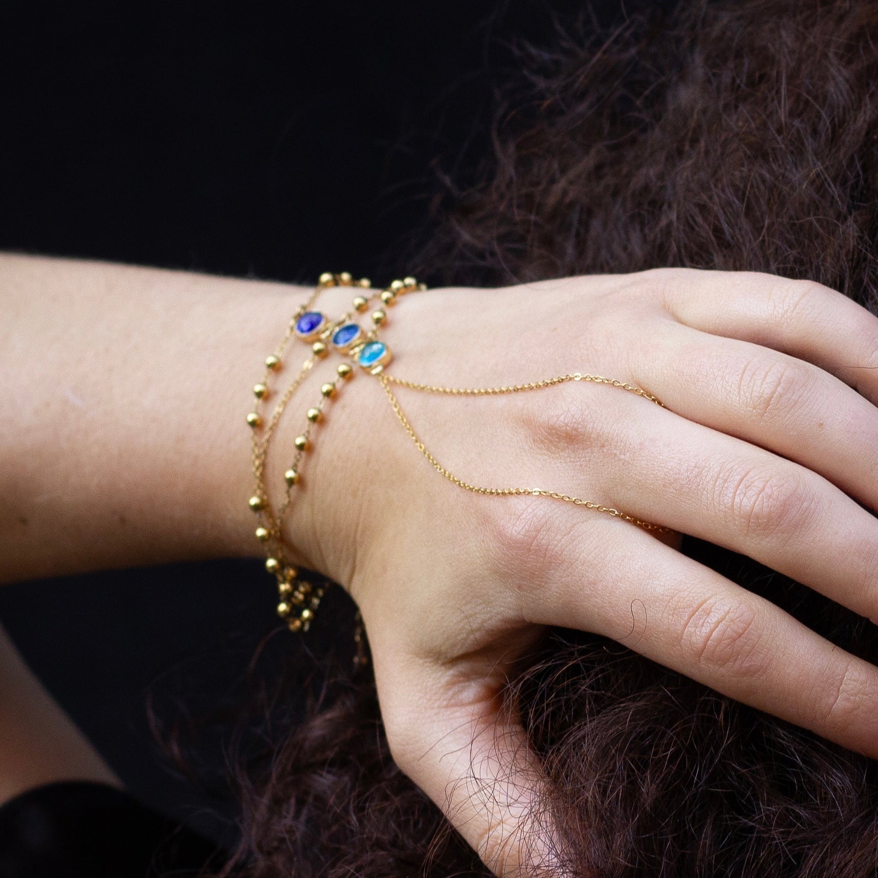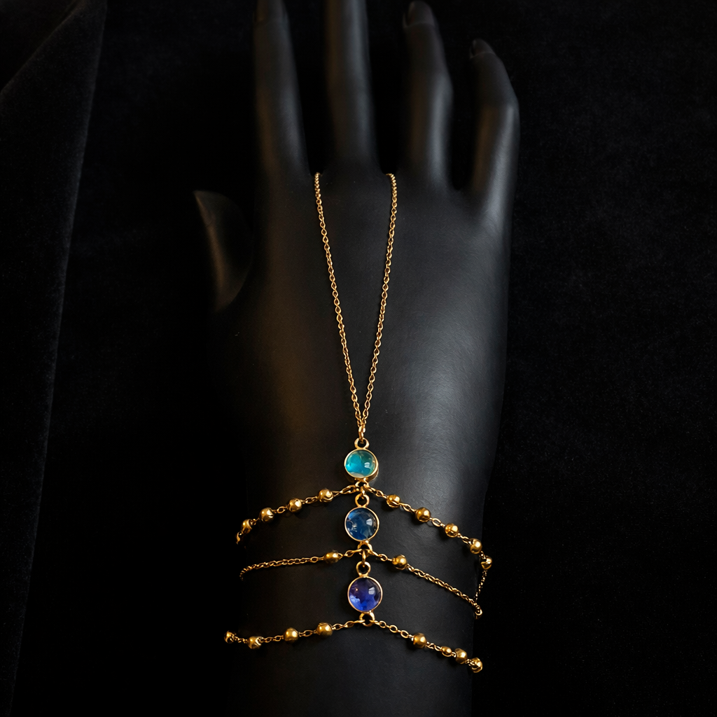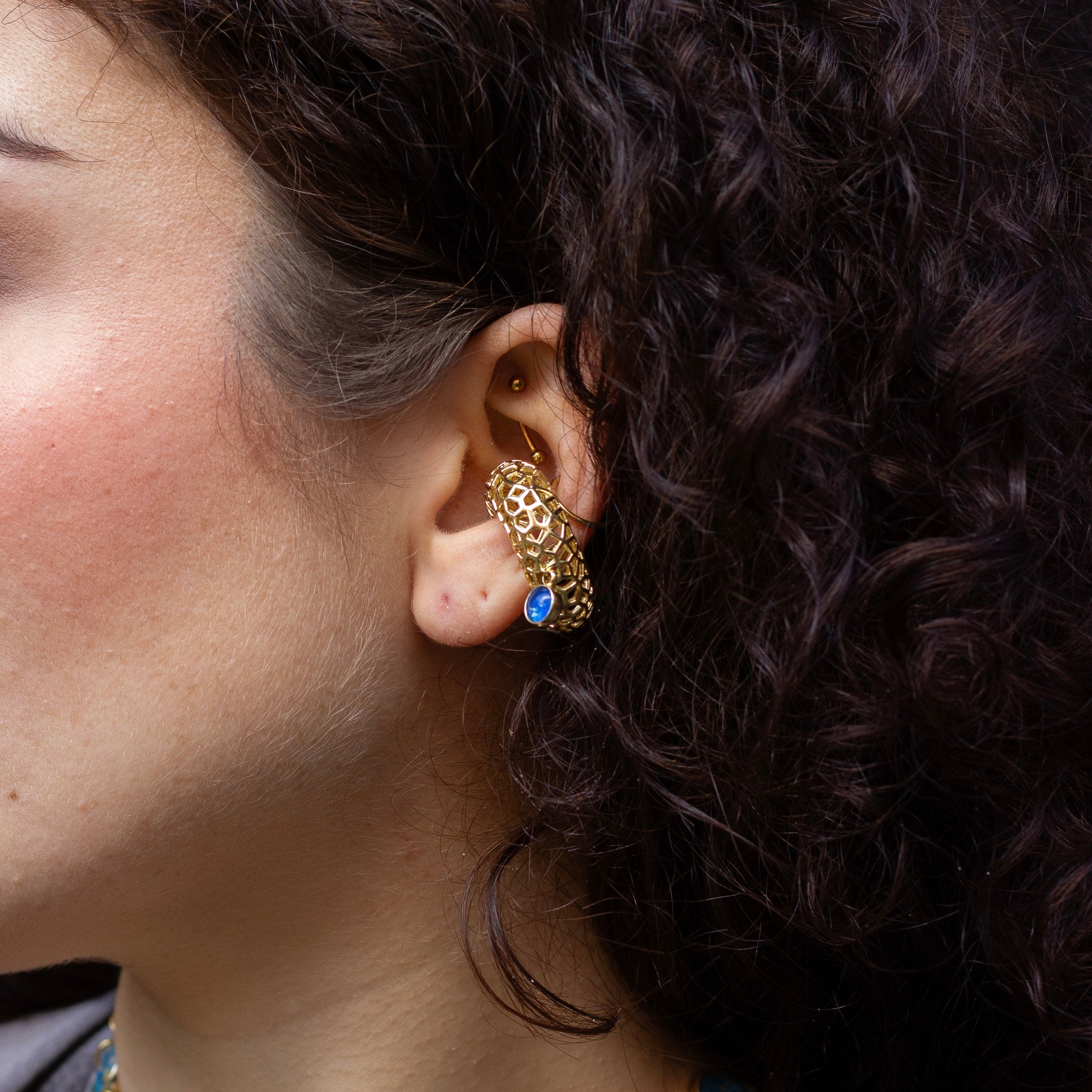 Une collection créée à partir de sertis tissés entre eux. Chaque sertis est composé de pigments naturels recouvert par un cabochon en verre.